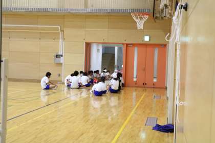 体育館で体育の授業中だったクラスも、静かに適切に行動しています。