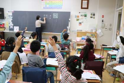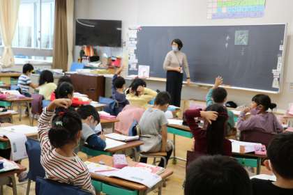 「昨日、『学』を習ったから、これで山の小学校って書けるね。」という声が聞こえます。