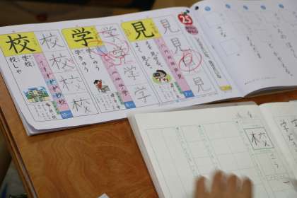 新出漢字の学習をしています。今日の漢字は学校の「校」です。子どもたちからは