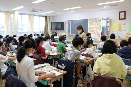 算数、社会に集中して取り組む姿です。さすが6年生!