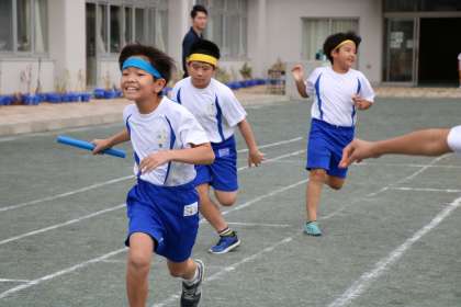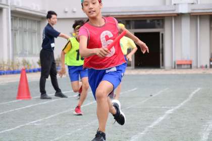 途中走者やアンカーがゼッケンをつけて走るので、各チームだいたい何人目の走者なのか目安がつきますが。子どもたちは、走ること、応援することに必死です。