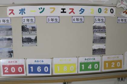午後には早速、スポーツフェスタ掲示板に5年生の得点が入りました。