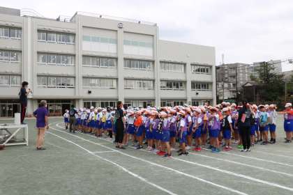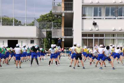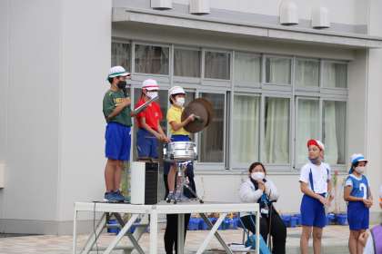 閉会式、整理運動の様子です。結果発表も生演奏付です。