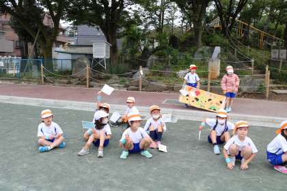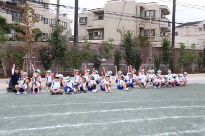 大きなクラス旗、手で持つ旗などクラスで話し合った工夫がたくさんです。