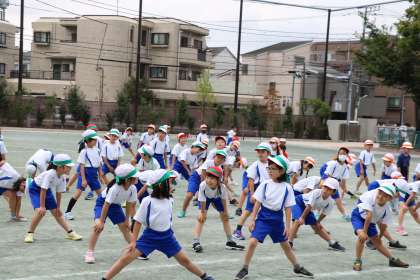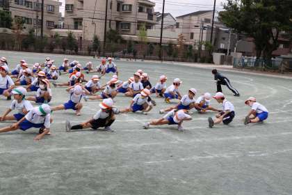準備運動は、子どもたちが自ら号令をかけながらやります。1・2時間目の1年生のスポーツフェスタを見た後だったので、かわいらしさからたくましさへ、1年間の成長を感じます。
