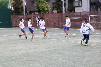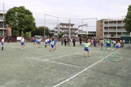 女子コート、男子コートの間、コートのすぐ近く全てが応援位置です。