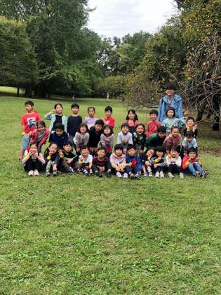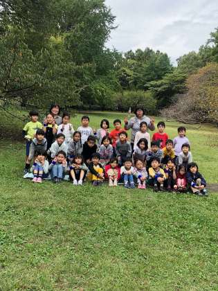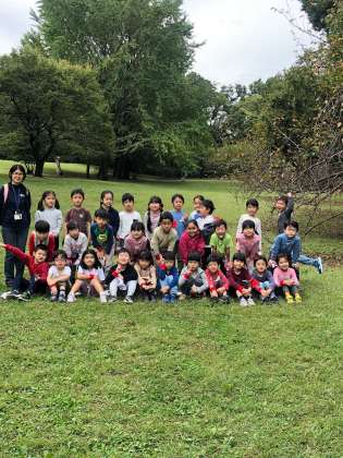 みんなどんぐりを拾いたくて仕方ないようですが。まずはお話を聞き、クラス写真を撮ってからです。