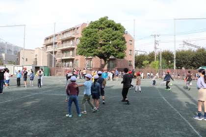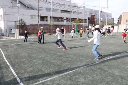5年生のお兄さんお姉さんと楽しく遊ぶことができました。5年生のやさしい接し方、一人一人と早く仲良しになろうと一生懸命です。