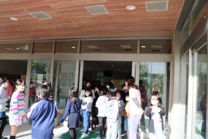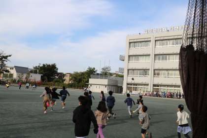 今日の朝は、2・5年生の交流活動です。2年生の教室に迎えに行って遊び場まで一緒に行きます。