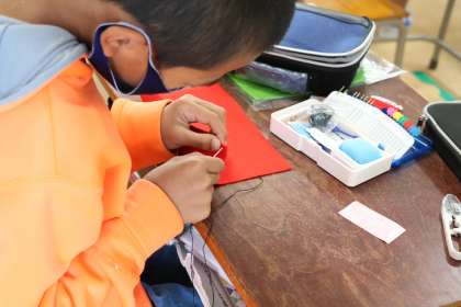 「母さんにペンケース作るんだ」と言いながら、一生懸命針を動かす様子がかわいいです。