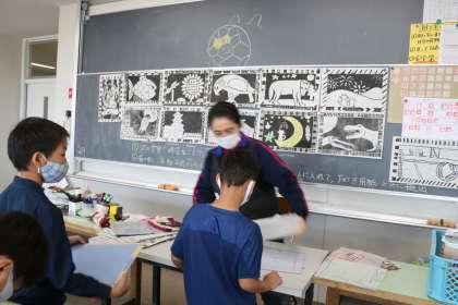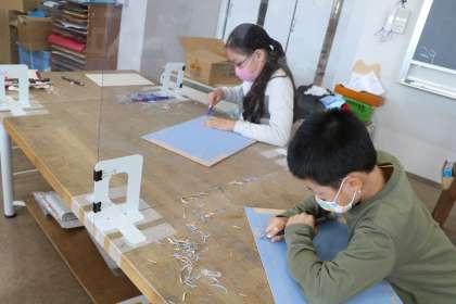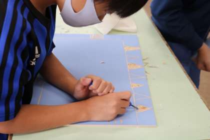 「ほって表すふしぎな花」木版画に取り組んでいます。