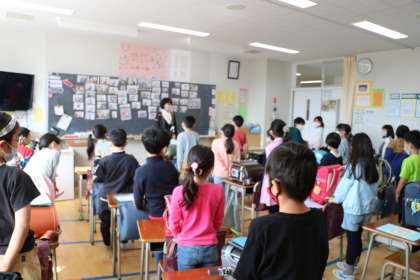 帰りの会の様子です。記念写真を撮ってから、「さようなら」。