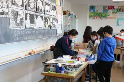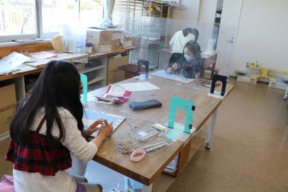 版画に取り組んでいます。教室で、デザインをイメージする時間を担任が十分とってくれたので、図工室での下絵づくりがさらに深まったと、図工担当の先生が話してくれました。自分の作品に自信を持って取り組めることほど楽しいことはありません。