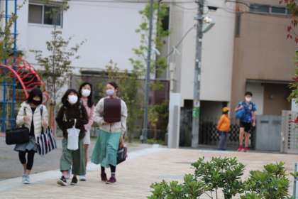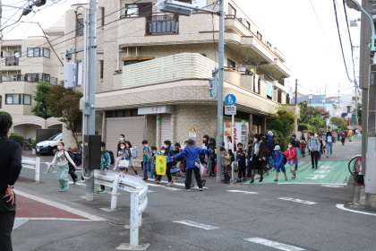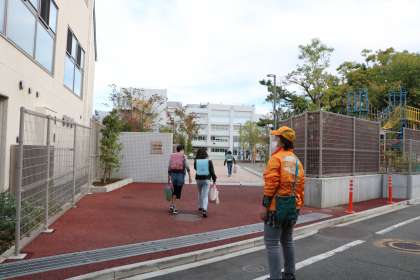道幅いっぱいに広がらないで歩くよう、声をかけていただいています。