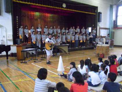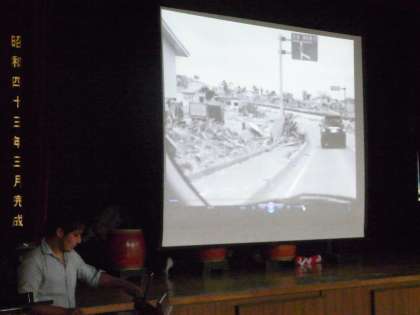 続いて登場は、山野小学校教職員チームです。HPで練習風景をお届けしていましたが、曲目はスピッツの「空も飛べるはず」です。何とアンコールがかかり、会場の皆さんも一緒に「翼をください」を歌いました。続いては、吉浦写真館の吉浦さんが被災地にボランティアで行った時の写真を見せてくださいました。改めて、とんでもない災害だったということが伝わってきました。今回のチャリティコンサートでは、砧工房さんが白玉汁粉を提供してくださいました。中野施設長さんが、思いを熱く語ってくださいました。とってもありがたかったです。