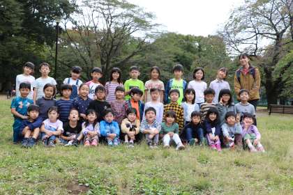 集合写真の隊形に並んだら、帽子とマスクを取ります。もうおしゃべりしません。