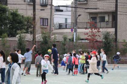 クラス遊びをする学級もあります。担任の先生が審判になって、遊びが始まります。