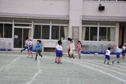 チャイムが鳴ると朝の支度を終えた子どもたちが外に出てきます。