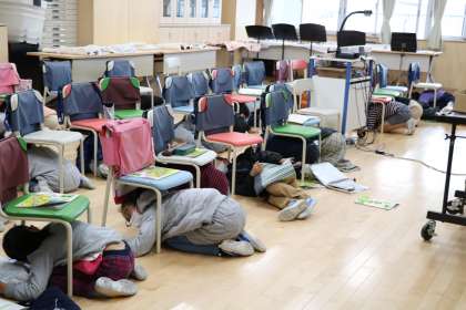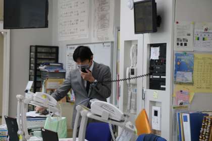今日は11月の避難訓練です。地震、その後の出火を想定した訓練です。