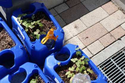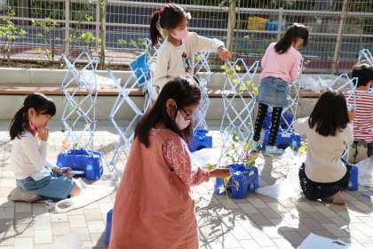 先週支柱を取った学級の植木鉢には、こぼれた種から目が出てきた植木鉢もあります。