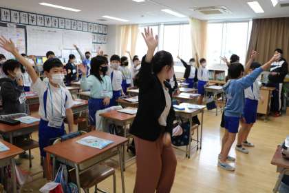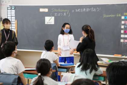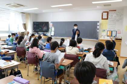 写真は、昨日の4年生の学習の様子です。社会科、外国語を学習しています。