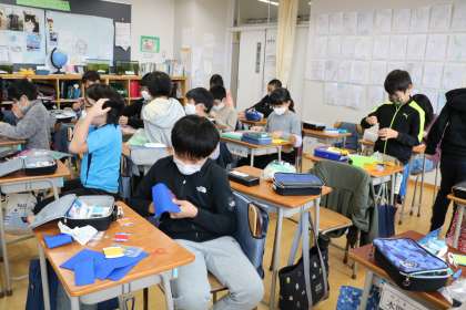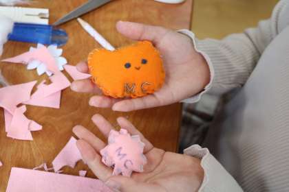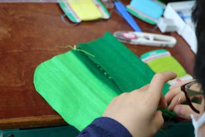 フェルト布で作品を作っている様子です。飾りや、デザインにもそれぞれのこだわりがあり、どれも素敵な作品ばかりです。