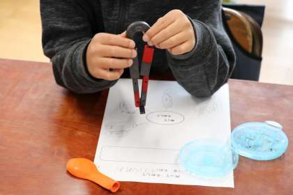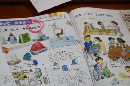 「作ってあそぼう」の学習に入ります。今日は、様々な素材に親しみ、あれこれ触って遊びながら次にできることを考えます。