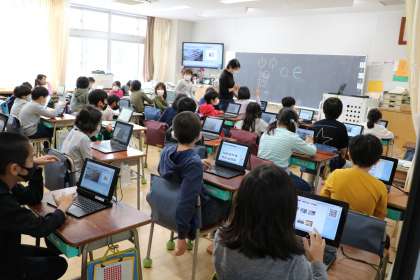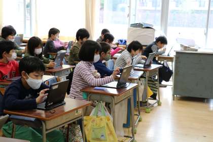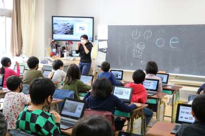 タブレットの使い方を学習しています。今日は山野小学校のホームページを見ています。