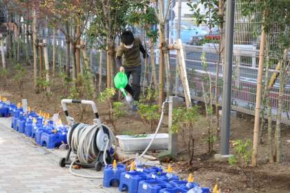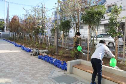 園芸委員会さんが、先日植えたヒヤシンスの球根に水をあげています。毎月1回の委員会活動以外にも、このような山野小学校のために常時活動をしている5・6年生がたくさんいます。