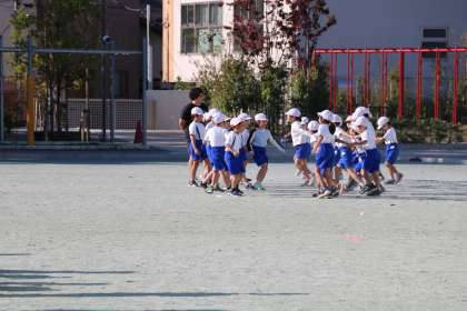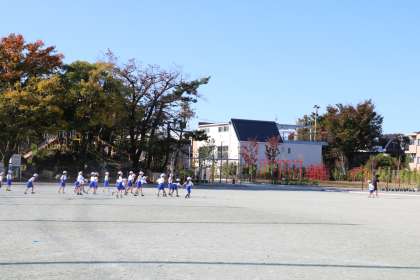 校庭では1年生が体育の学習を始めています。ウォーミングアップに「はないちもんめ」や「だるまさんがころんだ」などの昔遊びで声を出し、体を動かす学級もあります。