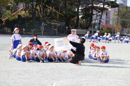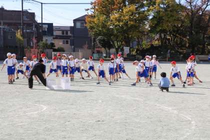 整列や準備体操も上手になってきました。先生の話を聞き、今日の学習のめあてやルールを確認しています。