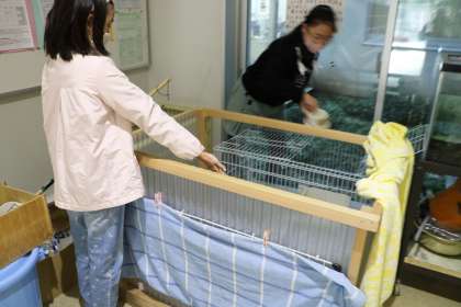 早朝から飼育委員の高学年が、ウサギの世話をしています。寒くなってきたので、ウサギ小屋の回りを毛布で囲んでいます。みんなが登校する前に仕事をしているので、朝早くからありがとう…と声をかけると、「みんなが登校し始めると騒々しくなってストレスになるとかわいそうだから」という返事が返ってきます。優しい気持ちで一日のスタートができます。