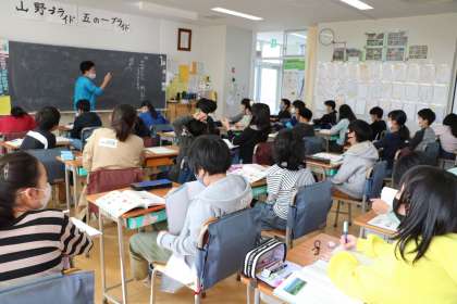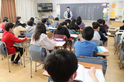 どの学級も集中して学習に取り組んでいます。そおっとドアを開けても、子どもたちが気になってしまうので、ドアが開いている学級のみ入らせてもらいます。