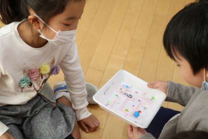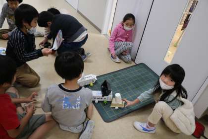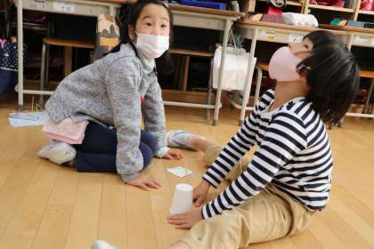 友だちの作ったおもちゃを試すことも大切な学習です。