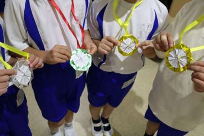 たっぷり遊んだあとは、振り返りをし、次の遊びの約束をして解散です。2年生の教室まで送ってくれる班もあります。2年生が「仲良く遊べたねって、5年生にメダルまでもらったんだ」と嬉しそうに見せてくれた班もあります。