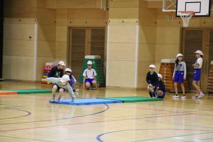 待っている友達も、やっている人の技をきちんと見ているので、アドバイスや「あご、ちゃんとひいていたよ!」などという声が自然に出ます。
