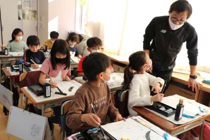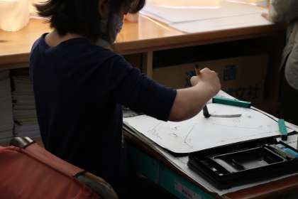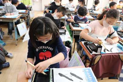今日練習する漢字は「人」です。左はらい、右はらいを丁寧に何度も確認します。