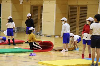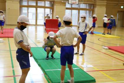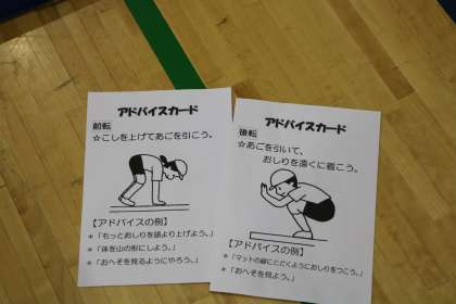 ヒントカードを使ったり、ゼッケンやロイター版を使って練習の場を工夫したりして練習します。友達どうしのアドバイスも大切です。