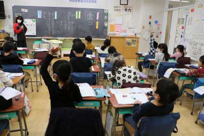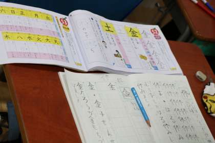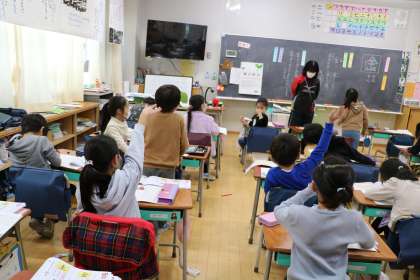 こちらの学級は新出漢字の学習をしています。「金」の付く言葉や短文をたくさん発表しています。「金たろうが金もちで・・・」「おう金のメダルを・・・」など楽しみながら漢字の学習を進めている様子についつい長居をしてしまいました。自由に発想し、発表し、みんなで認め合う学級の雰囲気がとてもすてきです。
