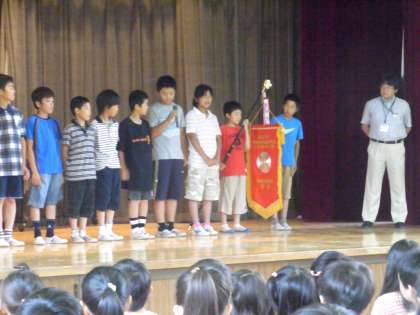 学校では、スポーツに限らず何かで活躍したり、結果を出したという申し出があれば、全校朝会で表彰します。日ごろの頑張りの成果を全校児童の前で称えたいと思っています。
