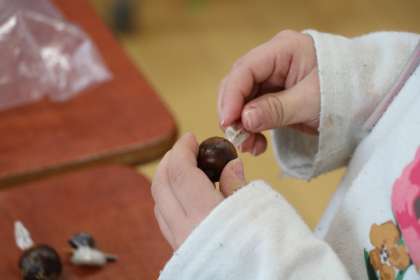 「校長先生みて!」とあちこちから声がかかり、作ったものを紹介してくれます。