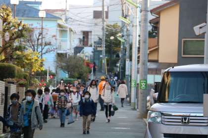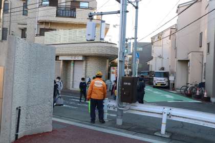 今朝も子どもたちの安全を、自治会の方が見守ってくださいます。登校してきた子がビニール袋にたまった落ち葉を見て「今日の朝だけの分?あんなにたくさんたまったの!」とびっくりしています。