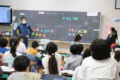 大文字アルファベットを、形でグループに分ける活動を通して、たくさんアルファベットに親しんでいます。