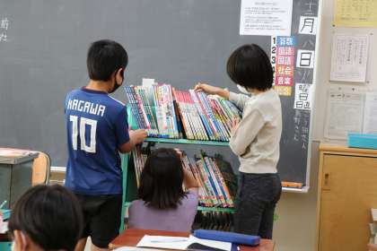 「もしものときにそなえよう」の学習の様子です。自分のテーマに沿った防災に関する本から資料を読み取り書き出しています。この後、意見文にまとめていく学習です。
