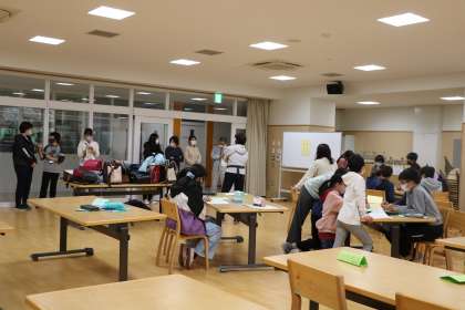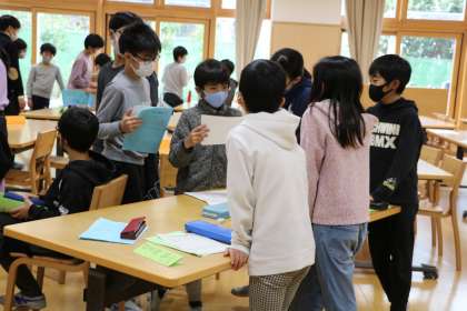 写真は代表委員会の様子です。1月の作品展に向けて、ポスターを作ろう、昼の校内放送を考えようなど分担して仕事を進めています。
