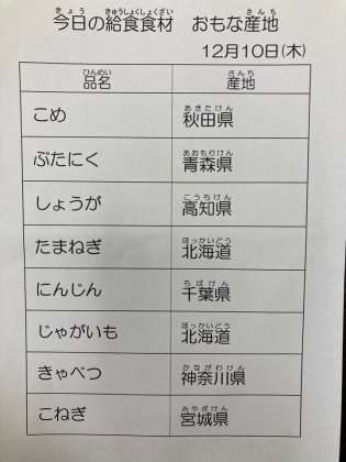 和風ハンバーグは、給食室で手作りしました。その数、何と1,252個です。ふんわりとした食感で、とても美味しいです。手作りの和風ハンバーグは、風格がありますね。こういう姿を和風堂々と言うのでしょうか。