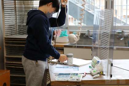 自分が表現したいことを先生に相談すると、様々な技法やその技法に合った画材や道具を提案され、挑戦しています。