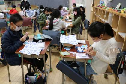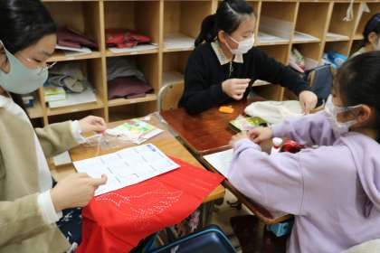 マスコットや袋を作っている「家庭科クラブ」の様子です。