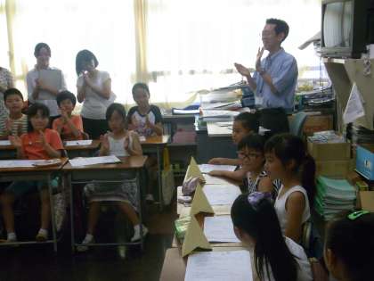 今日は4年4組で研究授業がありました。デイホームの方々に何か楽しんでもらうことを考えたいという子どもたちからの願いを受けて、学級会を開きました。一人ひとりが真剣にデイホームの方たちのことを考えて意見を言っていました。友達の意見もよく聞き、それに対してしっかりと考えを述べていました。4年生のその姿に、自分たちの力で何とかしていくんだという前向きで、力強い意志を感じました。本番の交流会が楽しみです。