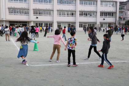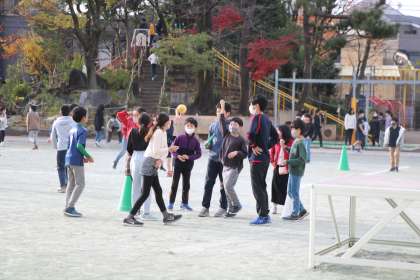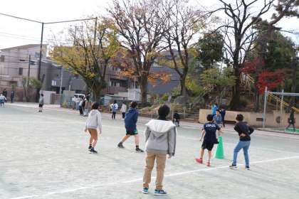 月曜日は高学年が校庭で遊べる朝ロングです。朝の支度が終わった子から校庭に出てきます。